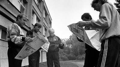 Павел Садырин с игроками читают свежий номер газеты в 1991 году